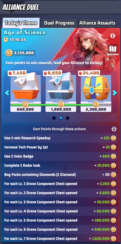 Go to the Research Center, open the “Alliance Duel” section, and start a research that requires Valor Badges.