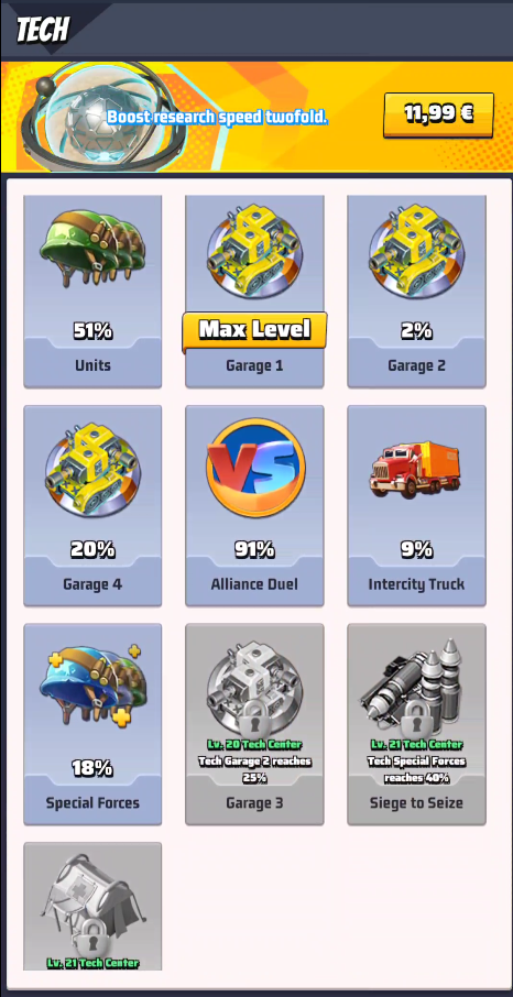 It will take a while to bring up the percentage of those researches as they require Valor badges that can be won only through the Duel reward chest.