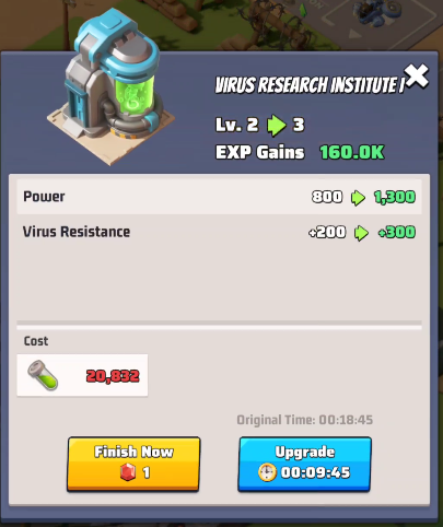 - Constructing and upgrading Virus Research Institute and New Vehicle Buildings